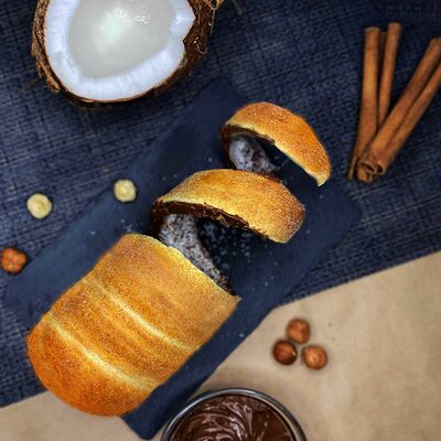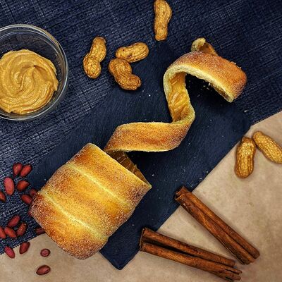 Тесто, приготовленное по традиционному Чешскому рецепту, сахар, корица, киндер-шоколад, арахис