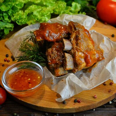 Куриные крылья с золотой корочкой. Подаются с кисло-сладким соусом тхай