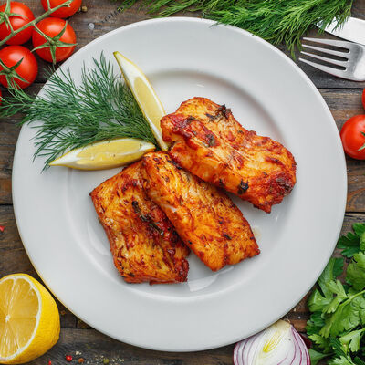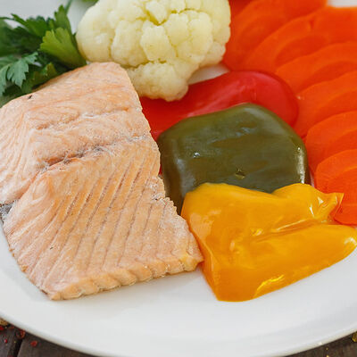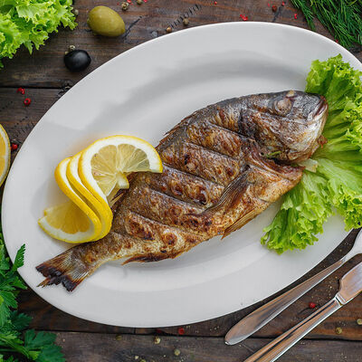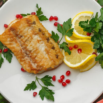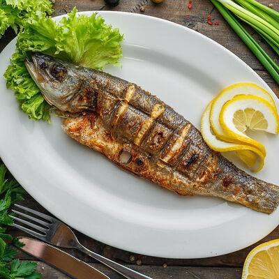 Филе морского окуня, филе семги, бульон рыбный, картофель, лук репчатый