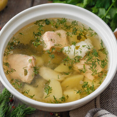Уха из морского окуня и семги доставка
