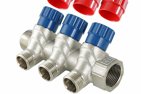 (VTc.560.N) Латунный никелированный коллектор на 2, 3 и 4 выхода диаметром 1/2" с наружной резьбой. На каждом выходе предусмотрен вентиль для регулирования расхода рабочей среды со средним полным ресурсом 8 тыс. циклов. Диаметр коллектора - 3/4 или 1", резьба - внутренняя/наружная. Ремонтопригодный. Рабочая температура теплоносителя - до 110 °С, давление - до 10 бар. Применяется для распределения потоков жидкостей в контурах теплого пола, радиаторного отопления, холодного и горячего водоснабжения. Технические характеристики Рабочее давление, бар 10 Температура рабочей среды, °С До 110 Условная пропускная способность, Kvs, м3/ч 2,7 (3/4 ), 2,7 (1 ) Расстояние между осями выходов, мм 36 Средний полный срок службы, лет 15