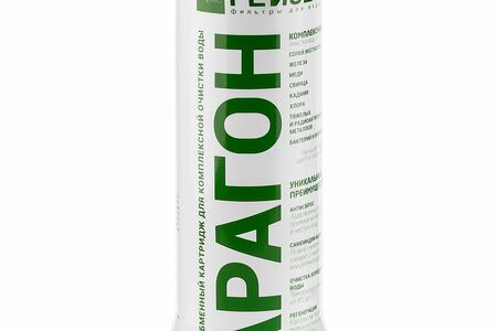 Картридж Арагон Био Картридж Арагон-БИО содержит особо эффективную биоцидную добавку, которая во взаимодействии с материалом Арагон и при сохранении в картридже серебра в несмываемой форме, создает тройную гарантию защиты от вирусов и бактерий. Фильтр Гейзер-БИО рекомендован для доочистки и дообеззараживания водопроводной воды ФГБУ НИИ Экологии Человека и Гигиены Окружающей Среды им. А. Н. Сысина Минздравсоцразвития России. В картридже Арагон-БИО существенно снижены размеры микроглобул, что позволяет значительно увеличить электрокинетический потенциал сорбента, за счет увеличения поверхности соприкосновения. В картридже Арагон-БИО применена технология монодисперсного распре- деления пор полимера, что увеличивает гарантии задержания любых загрязнений во всем объеме картриджа и сохранение высоких характеристик очистки на всем протяжении ресурса. Единственный в России серийный картридж прошедший государственную сертификацию в Федеральной службе по надзору в сфере защиты прав потребителй и благополучия человека и по системе ГОСТ Р по очистки воды от бактерий и вирусов. ГОСТ Р 51232-98, ГОСТ Р 51871-02, Сан ПиН 2.1.4.1074 Стандарт 10 Slim Line