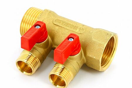 Коллектор с шар.кранами Tiemme 1"нв - 2 х 1/2"н (NINO) лат. 1820006(1832G160402) доставка