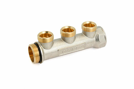 Никелированный коллектор для воды и других сред, неагрессивных к материалам изделия. Изготовлен из качественной сантехнической латуни марки CW617N (европейский стандарт ЕN 12165). Имеет 3 выхода диаметром 3/4" с наружной резьбой, стандарт присоединения - евроконус . Диаметр коллектора - 1", резьба - внутренняя/наружная. Рабочая температура - до 130 °С, давление - до 16 бар. Применение коллектора позволяет отказаться от дополнительной запорной, регулирующей арматуры и уплотнений, облегчает проектирование, монтаж и наладку оборудования. В водоснабжении коллектор обеспечивает равное давление для потребителей, исключая их влияние друг на друга. Коллектор отопления гарантирует поступление требуемого количества тепла к отопительным приборам и контурам теплого пола.