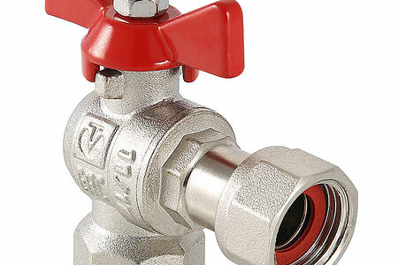 Кран шаровой угловой с накидной гайкой обеспечивает разбивку трубопровода на отсекаемые ремонтные участки, выгодно отличаясь от применяемых с той же целью разборных сгонов и шаровых кранов с полусгонами, т.к. не имеет резиновых уплотнительных колец, снижающих температурную стойкость изделия и его общий срок службы, не требует применения специального сгонного ключа при монтаже и демонтаже, компактнее, дешевле и легче угловых кранов с полусгонами, имеет меньше зон потенциальной протечки. Кран шаровой угловой с накидной гайкой и наружной резьбой VT.267.N разработан на базе серии VALTEC BASE, ремонтопригодный, рассчитан на использование в системах с максимальной температурой рабочей среды 130 °C и номинальным давлением 4,0 МПа. Средний полный ресурс крана - 55 тыс. циклов. Накидная гайка крана соединяется с ответной наружной резьбой трубопровода или арматуры через плоскую прокладку из безасбестового паронита. Монтаж и демонтаж крана производится обычными трубными ключами.