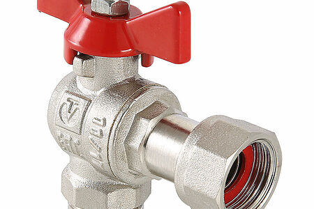 Кран шаровой угловой с накидной гайкой обеспечивает разбивку трубопровода на отсекаемые ремонтные участки, выгодно отличаясь от применяемых с той же целью разборных сгонов и шаровых кранов с полусгонами, т.к. не имеет резиновых уплотнительных колец, снижающих температурную стойкость изделия и его общий срок службы, не требует применения специального сгонного ключа при монтаже и демонтаже, компактнее, дешевле и легче угловых кранов с полусгонами, имеет меньше зон потенциальной протечки. Кран шаровой угловой с накидной гайкой и наружной резьбой VT.267.N разработан на базе серии VALTEC BASE, ремонтопригодный, рассчитан на использование в системах с максимальной температурой рабочей среды 130 °C и номинальным давлением 4,0 МПа. Средний полный ресурс крана - 55 тыс. циклов. Накидная гайка крана соединяется с ответной наружной резьбой трубопровода или арматуры через плоскую прокладку из безасбестового паронита. Монтаж и демонтаж крана производится обычными трубными ключами.
