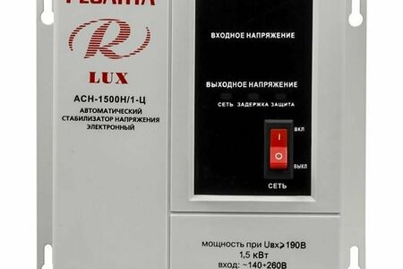 Стабилизатор напряжения Ресанта АСН 1500 Н/1-Ц Lux предназначен для защиты бытовых электроприборов и различной домашней техники от поломки во время скачков напряжения в сети. Стабилизатор предохраняет от перегорания бытовую технику и приборы, которое может произойти в случае аварии на подстанции, обрыва в сети или других факторов вызывающих скачки напряжения. Особенно необходим для компьютерной техники, которая очень чувствительна к перепадам напряжение. Компактный настенный стабилизатор Ресанта АСН-1500Н/1-Ц Lux позволит обеспечить качественным электропитанием чувствительную к перепадам напряжения технику, предохраняя ее от повреждений и продлевая срок службы. Прибор надежен и прост в эксплуатации, что делает его идеальным приобретением для каждого дома. Стабилизатор способен работать с большим разбросом входных напряжений, одинаково хорошо справляясь как с длительными спадами и подъемами, так и с частыми короткими скачками. Какой бы ток ни подавался на устройство, вы всегда можете быть уверены в том, что на выходе получите ровные 220 В, необходимые для корректной работы бытовой техники и электроники. Стабилизатор Ресанта АСН-1500Н/1-Ц Lux способен работать в однофазной сети, поддерживая суммарную нагрузку до 1,2 кВт. Это делает его оптимальным выбором для подключения одного или двух устройств, наиболее чувствительных к перепадам тока в сети. Характеристики Диапазон входного напряжения, В 140-260 Номинальная величина выходного напряжения, В 220 8% Номинальная мощность при Uвх?190 В (кВт) 1,5 Рабочая частота (Гц) 50 / 60 КПД, при нагрузке 80% не менее 97 Точность поддержания выходного напряжения (%) 8 Масса нетто (кг) 4,6 Охлаждение естественное Время регулирования (мс) 5-7 Искажение синусоиды отсутствует Высоковольтная защита (В) 260 5 Класс защиты IP 20 (негерметизирован) Габаритные размеры, Д?Ш?В (мм) 206х133х230 Рабочая температура окружающей среды (оС) 0-45 Относительная влажность воздуха, не более (%) 80