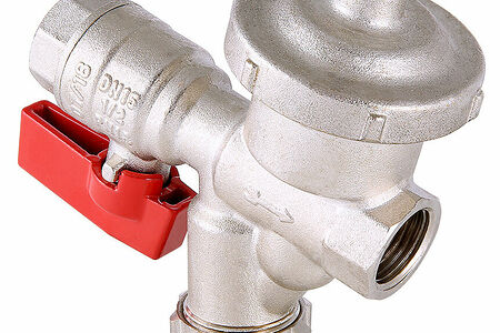 Краны с фильтром и редуктором давления (КФРД) - разработанные и запатентованные VALTEC комбинированные устройства для инженерных систем. Благодаря компактности и наличию основных необходимых элементов, объединенных общим корпусом, изделия популярны при комплектации квартирных вводов водопроводов холодной и горячей воды. КФРД VT.300 представляет собой комбинацию прямого шарового крана, косого фильтра с заглушкой и расположенной под тупым углом к оси потока фильтровальной камерой, мембранного редуктора давления (настройка фиксированная, 3,4 бара). Особенности конструкции делают модуль более надежным, по сравнению с КФРД предыдущих версий, эффективным (в частности, при установке на вертикальном участке с направлением потока снизу-вверх), удобным в обслуживании (резьба заглушки фильтра не соприкасается с рабочей средой, что исключает ее закисание ). При горизонтальной установке КФРД VT.300 допускается любое направление потока - как справа налево, так и слева направо. Кран шаровой с фильтром и редуктором давления универсальный VT.300 рассчитан на использовании в системах с рабочим давлением не выше 16 бар и температурой рабочей среды в диапазоне от +2 до +95 °C.