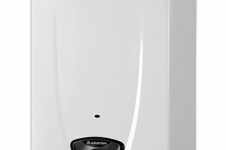 Газовый проточный водонагреватель с открытой камерой сгорания. Преимущества: - электронный розжиг от батареек (в комплекте), - электронный контроль заданной температуры, - датчик контроля пламени, - защита от перегрева, - управление всеми параметрами одной ручкой