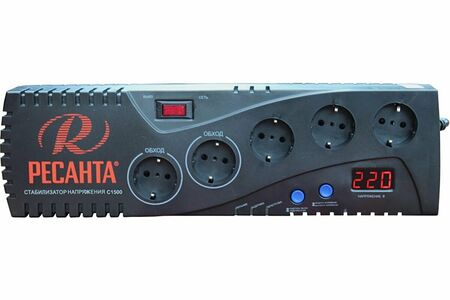 Для автоматического поддержания заданного напряжения, которые различаются максимальными значениями мощности и тока. Выбирая стабилизатор, вы должны точно представлять, на какую суммарную мощность нагрузки он будет применяться. Ресанта С1500 рассчитан на мощность нагрузки 1 кВт при входном напряжении более 190 В. Это однофазный релейный стабилизатор с цифровым дисплеем, разработанный по международным стандартам для того, чтобы защитить подключенные устройства от нестабильности электроэнергии сети. Этот стабилизатор найдет свое применение, как для работы в домашних условиях, будь то квартира или загородный дом, так и для работы в офисе или небольшой мастерской. С помощью С1500 компьютерная, офисная техника и бытовые однофазные электроприборы будут обеспечены стабильным напряжением. Характеристики Диапазон входного напряжения, В 140-260 Номинальная величина выходного напряжения, В 220 8% Номинальная мощность при Uвх?190 В (кВт) 1 Рабочая частота (Гц) 50 / 60 КПД, при нагрузке 80% не менее 97 Точность поддержания выходного напряжения (%) 8 Масса нетто (кг) 3,8 Охлаждение естественное Время регулирования (мс) 5-7 Искажение синусоиды отсутствует Высоковольтная защита (В) 260 5 Класс защиты IP 20 (негерметизирован) Габаритные размеры, ДхШхВ (мм) 415х135х95 Рабочая температура окружающей среды (оС) 0-45 Относительная влажность воздуха, не более (%) 80