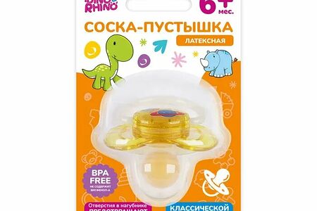 Дино и Рино Соска-пустышка латексная классическая 6м+ (DINO&RHINO) доставка