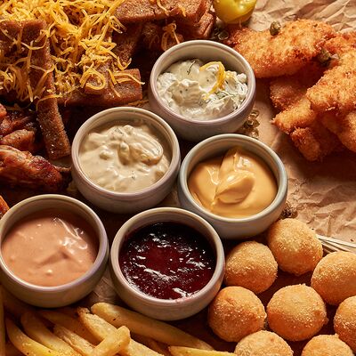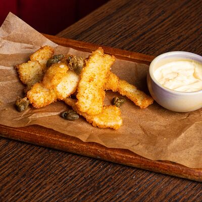 Цветная капуста, сухари панировочные, соль сванская, соус сырный, кляр