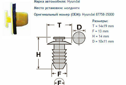 Клипса № 969 Clipston / Autokrep Hyundai Kia / Хендай, Киа Молдинги, 10 шт доставка