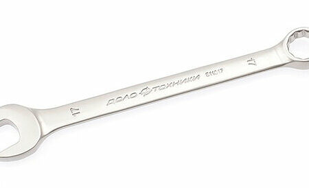 Классический вариант комбинированного гаечного ключа с рожковым профилем на одной стороне и двенадцатигранным накидным профилем на другой.Комбинированный ключ является самым распространенным вариантом гаечного ключа т.к. совмещает в себе возможности рожкового и накидного профилей.Накидной профиль отведён от продольной оси тела ключа на 15° это позволяет работать в ограниченном пространстве. Точность изготовления 12-гранного накидного профиля сводит к минимуму вероятность слизывания граней крепежа.Угол наклона рожковой части относительно продольной оси тела ключа - 15°, что позволяет довести минимальный угловой шаг при работе в труднодоступных местах до 30°.