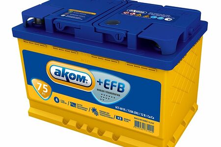 Кальциевая батарея. Предназначается для среднего пакета опций отечественных и иностранных автомобилей. Все аккумуляторы линейки АКОМ (кроме АКОМ 225) выпускаются в прямой и обратной полярности. АКОМ 225 выпускается в обратной полярности (положительный вывод справа, на этикетке написано Евро). Гарантийный срок службы на легкую группу 36 месяцев, на грузовые аккумуляторы - 12 месяцев.
