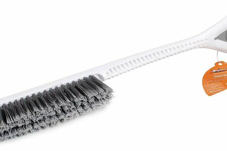 Щетка имеет трехрядную прочную щетину, которая позволяет убирать даже пристывший снег с автомобиля. Распушенная щетину позволяет проводить очистку снега с поверхности автомобиля деликатным образом. Ручка выполнена из ребристого пластика. Щетка снабжена съемным треугольным скребком, который имеет 3 рабочие поверхности.