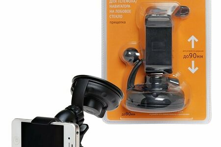 Держатель крепится на поверхность стекла при помощи присоски. Имеет несколько регулировок наклона. Резиновые накладки на прижимах надёжно удерживают устройство от выскальзывания.