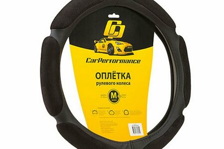 Оплетка на руль CarPerformance M 38см алькантара 6 подушек 2 см поролон, черная