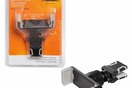 Закрепляется на дефлектор (решётка воздуховода) автомобиля при помощи зажима с гайкой. Надёжно удерживается губками с резиновыми рифлёными накладками. Штанга позволяет закрепить смартфон таким образом, чтобы он не перекрывал выход воздуха из дефлектора. Это уберегает смартфон от излишнего нагрева, при пользовании отопителем. Раздвижные губки с резиновыми накладками прочно удерживают телефон в держателе.