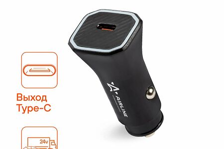 Зарядное устройство адаптер Type-C 3А в прикуриватель 12/24В AIRLINE доставка