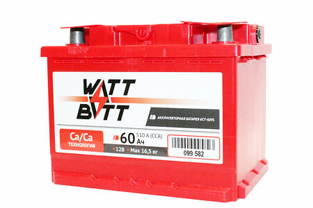 Автомобильные аккумуляторы WATTBATT Батареи WATTBATT подходят для всех новых и поддержанных авто отечественного производства и иномарок. Широкий ассортиментный ряд позволяет подобрать аккумуляторы на большинство автомобилей, эксплуатируемых в России. Батареи WATTBATT обладают рядом преимуществ и приятной ценой: Конструктивные особенности: • произведены по кальциевой технологии; • увеличенное количество электродов (в среднем на 15% по сравнению со стандартной комплектацией); • газоотводные каналы расположены в двух центральных пробках; • газоотводные каналы укомплектованы фильтрами-пламегасителями; • пробки защищены от пыли и грязи специальной планкой. Высокие пусковые токи: Облегчают пуск двигателей в условиях низких температур. Выносливые: Низкий расход воды, менее чувствительны к перепадам напряжения генератора. Низкий саморазряд: Аккумуляторы долго сохраняют заряд при длительной стоянке автомобиля (или при хранении в качестве резервных) за счет использования свинцово-кальциевого сплава в отрицательной пластине. Минимальный расход воды при высоких температурах: При правильной эксплуатации не требует доливки воды на протяжении всего гарантийного срока службы. Минимальный расход воды особенно важен в летний период, когда актуальна проблема «выкипания» под действием высоких температур. Повышенная устойчивость к виброударным нагрузкам: Данная характеристика достигнута за счет использования специальных пластиковых вкладок, фиксирующих пластины электродов. Повышенная безопасность: Встроенная в крышку система фильтров пламегасителей и пробки с лабиринтным уловителем паров кислоты предотвращают возможность взрыва аккумулятора при попадании искры извне. Все пробки закрыты общей планкой, что является дополнительной защитой подкапотного пространства от воздействия аэрозолей кислоты. Широкий диапазон рабочих температур: от -40 до +60 0С. Срок гарантии – 2 года.