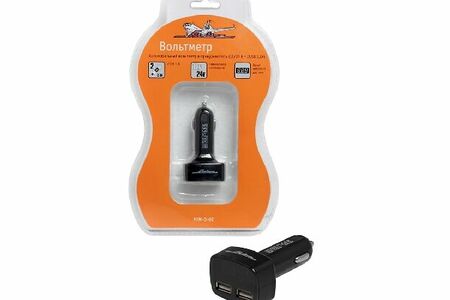 Вольтметр в прикуриватель 12/24v +2USB 3,1A (Airline) AVM-D-02 доставка