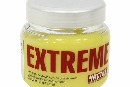 Чистик EXTREME - средство для очистки рук. Удаляет самые экстремальные загрязнения. ПРЕИМУЩЕСТВА: содержит мягкий скраб; нейтральный запах; паста для очищения рук от трудносмываемых загрязнений: нефтепродуктов, смол, лаков, красок, чернил, сажи и пыли;