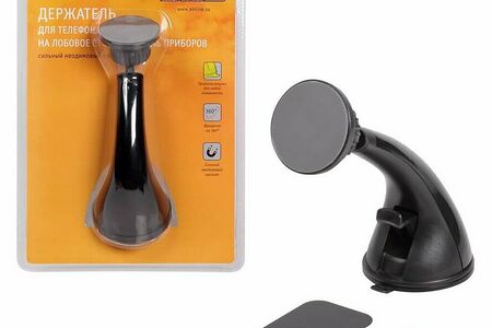 Универсальный магнитный держатель для телефона/смартфона крепится на лобовое стекло автомобиля или панель приборов на присоске-липучке.