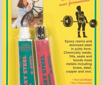 Клей ABRO содержит эпоксидные смолы и измельченную сталь. Применяются эпоксидные клеи для химической сварки, заполнения, герметизации и склеивания дерева, пластика и большинства металлов, включая латунь, сталь, медь, железо, и т.п. Эпоксидный клей надежно склеивает и обеспечивает хороший внешний вид. Устойчив к бензину, антифризу и большинству растворителей. Эпоксидный клей может применяться для сломанных велосипедов, растрескавшихся картеров коробки передач, тормозных колодок, всасывающих труб, поврежденных шпоночных канавок, трещин в обшивке, растрескавшейся батареи, бензобаков.