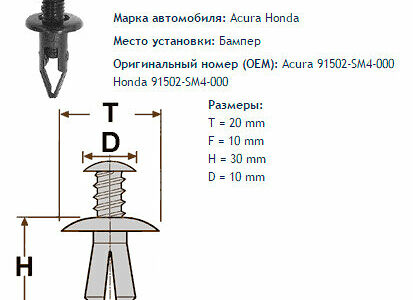 Клипса № 115 Clipston / Autokrep Acura Honda / Акура, Хонда Бампер, 10 шт доставка