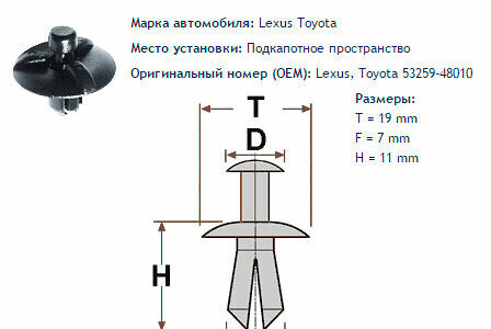 Клипса № 835 Clipston Lexus Toyota / Лексус, Тойота Подкапотное пространство, 10 шт доставка