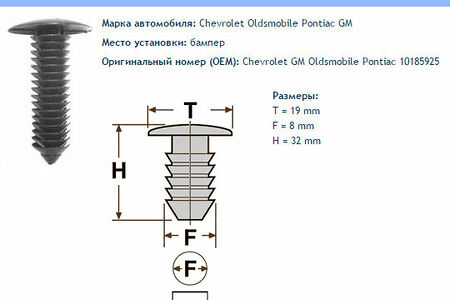 Клипса № 198 Clipston / Autokrep Chevrolet GM Oldsmobile Pontiac / Шевроле Бампера, 10 шт доставка