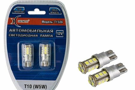 Светодиод 12V (номер, габариты) (T10/W5W/Ba9s) T1506 (Xenite) 2шт, блистер