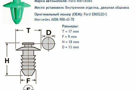 Клипса № 939 Clipston / Autokrep Ford Mercedes / Форд, Мерседес Внутренняя отделка, двери, 10 шт доставка