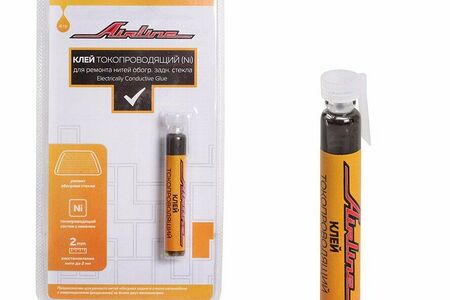 Клей AIRLINE токопроводящий предназначен для ремонта нитей обогрева заднего стекла автомобиля с повреждениями не более двух миллиметров. Обладает токопроводящими свойствами за счет добавления никеля.