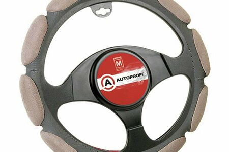 Оплетка на руль AUTOPROFI M 38см алькантара 10 подушек 2 см поролон с памятью, темно-серая