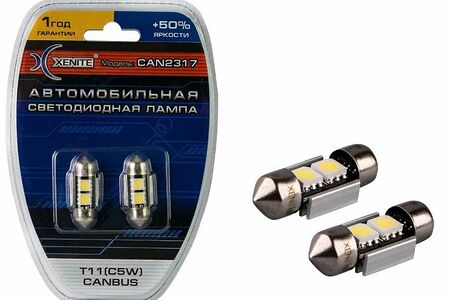 Светодиод 12V (салон, номер) (T11/C5W/SV8,5*31 мм CANBUS) CAN2317 (Xenite) белый +50% 2шт, блистер