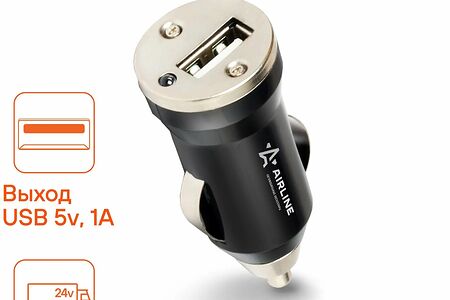 Зарядное устройство AIRLINE адаптер USB 1А в прикуриватель 12/24В доставка