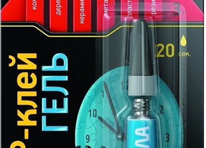 Супер-клей ГЕЛЬ СИЛА, идеально подходит для быстрого и эффективного ремонта различных предметов мебели, интерьера, обуви и т.д. Накрепко схватывает дерево, кожу, резину, стекло, фарфор и пластик, при этом супер клеи экономично расходуются и высыхают за несколько секунд. Не растекается и не капает.