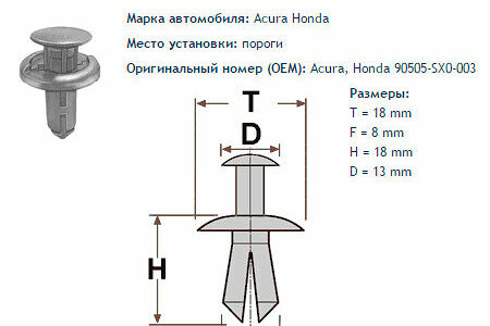 Клипса № 649 Clipston / Autokrep Acura Honda / Акура, Хонда Пороги , 10 шт доставка