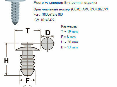 Клипса № 302 Clipston / Autokrep AMC Ford GM / Форд Внутренняя отделка, дверная обшивка, 10 шт доставка