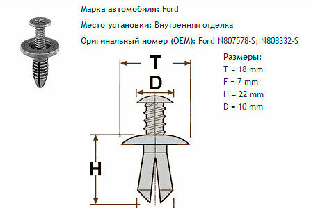 Клипса № 614 Clipston / Autokrep Ford / Форд Внутренняя отделка, 10 шт доставка