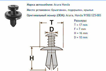 Клипса № 325 Clipston / Autokrep Acura Honda / Акура, Хонда Брызговики, Подкрылки, Кузов (крылья), 10 шт доставка