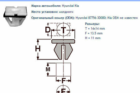 Клипса № 365 Clipston / Autokrep Hyundai Kia / Хендай, Киа Кузов (молдинги), 10 шт доставка