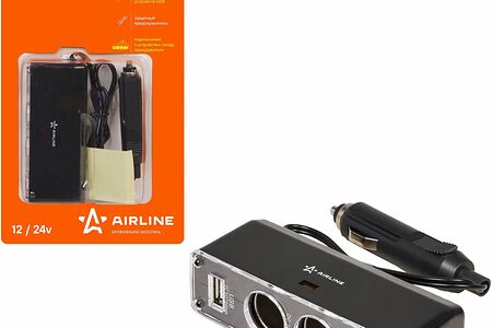 Разветвитель прикуривателя AIRLINE 3 гнезда и USB 12В черный доставка