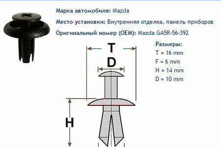Клипса № 833 Clipston / Autokrep Mazda / Мазда Внутренняя отделка (панель приборов - торпеда), 10 шт доставка