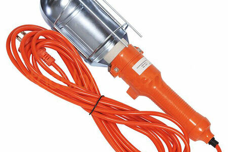 Лампа переносная АВТОДЕЛО применяется для местного освещения, имеет стандартный цоколь Е27 для ламп накаливания, рассчитана на работу от сети переменного тока с напряжением до 240 В, максимально допустимая мощность ламп - 60W, провод 0,1х20мм с внешним диаметром 6мм в PVC изоляции, длина провода - 5м, оборудована клавишным выключателем, металлическим рассеивателем, защитной стальной решеткой, крюком для подвеса.