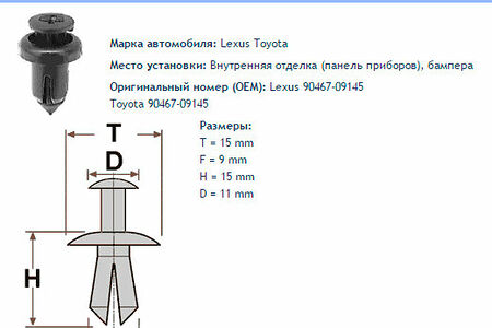 Клипса № 145 Clipston / Autokrep Lexus Toyota / Лексус, Тойота Панель приборов, бампера, 10 шт доставка