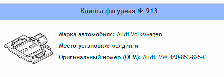Клипса № 913 Clipston / Autokrep Audi VW / Ауди, Вольсваген Молдинги, 10 шт доставка