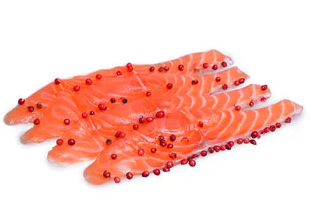 Лосось фирменной посолки с перцем розе, нарезка~100г доставка